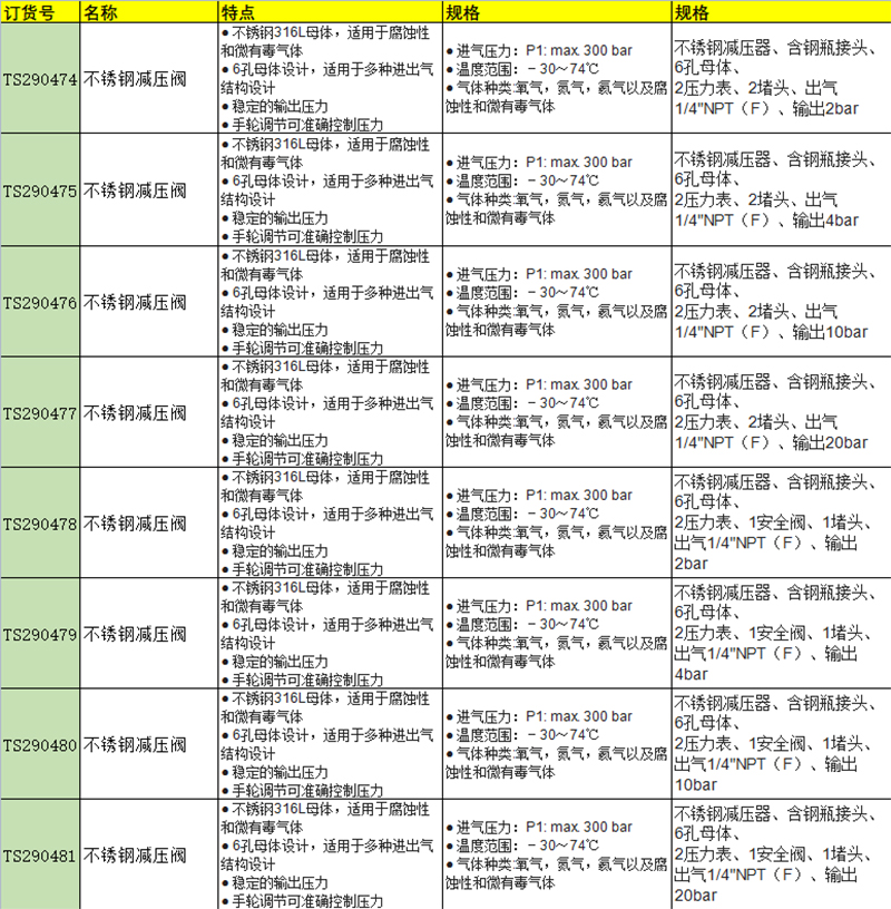 · 不锈钢316L母体,适用于腐蚀性和微有毒气体 · 6孔母体设计,适用于多种进出气结构设计 · 稳定的输出压力 · 手轮调节可准确控制压力