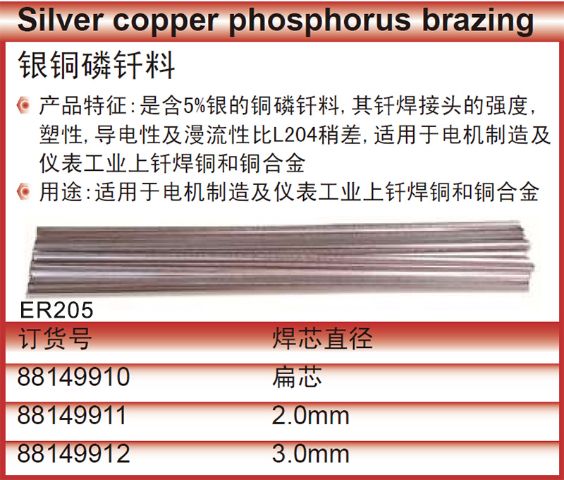 ·是含5%银的铜磷钎料,其钎焊接头的强度,塑性,导电性及漫流性比L204稍差,适用于电机制造及仪表工业上钎焊铜和铜合金