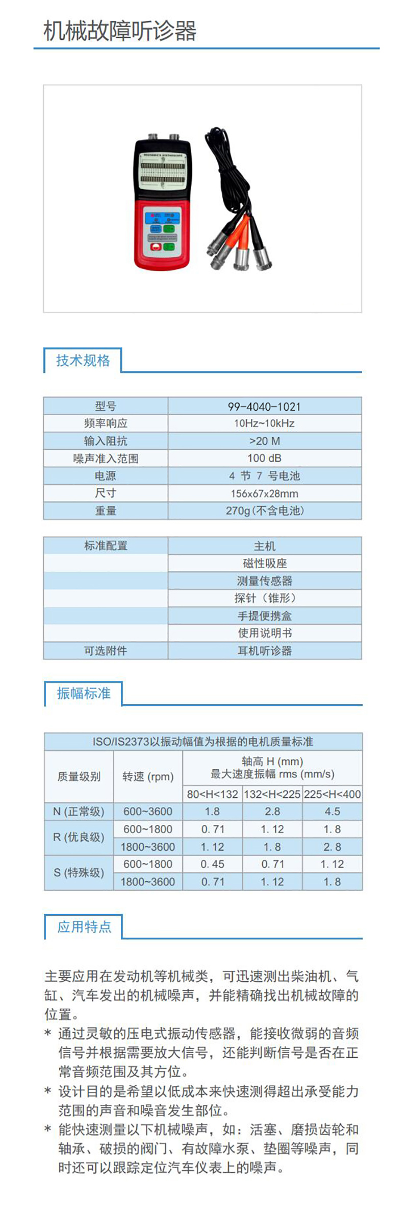 ·用于快速定位发动机噪音源,如活塞式打击,磨损的齿轮和轴承,吹气垫圈。还可用于跟踪仪表板摇铃和吱吱声。
