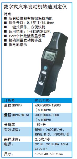 ·适用范围:1-8缸的发动机1999个计数液晶显示屏精确测量发动机转速低电池指示