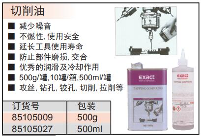 ·减少噪音 ·不燃性,使用安全 ·延长工具使用寿命 ·防止部件磨损,交合 ·优秀的润滑及冷却作用 ·500g/罐,10罐/箱,500ml/罐