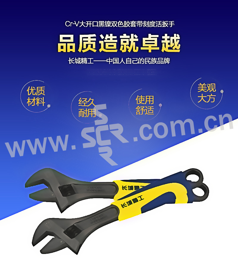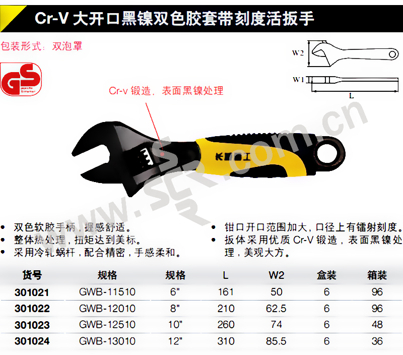GREATWALL/长城精工 Cr-V大开口黑镍双色胶套带刻度活扳手 GW-301022 8"/200mm GWB-12010 1把