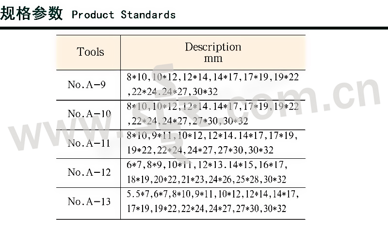 QIAOFANG/中泊桥防 铝青铜防爆套装双头梅花扳手 NO.A-9 9件 1套