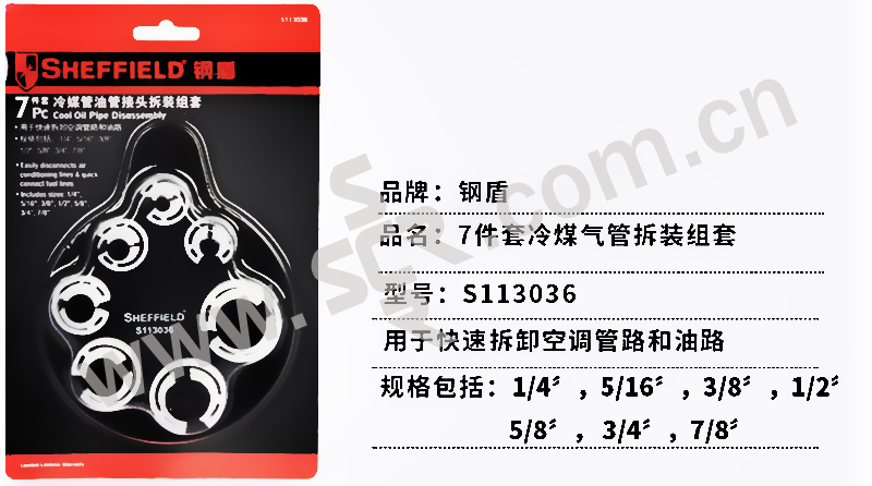 SHEFFIELD/钢盾 冷媒管油管接头拆装组套 S113036 7件 1/4"-7/8" 1套