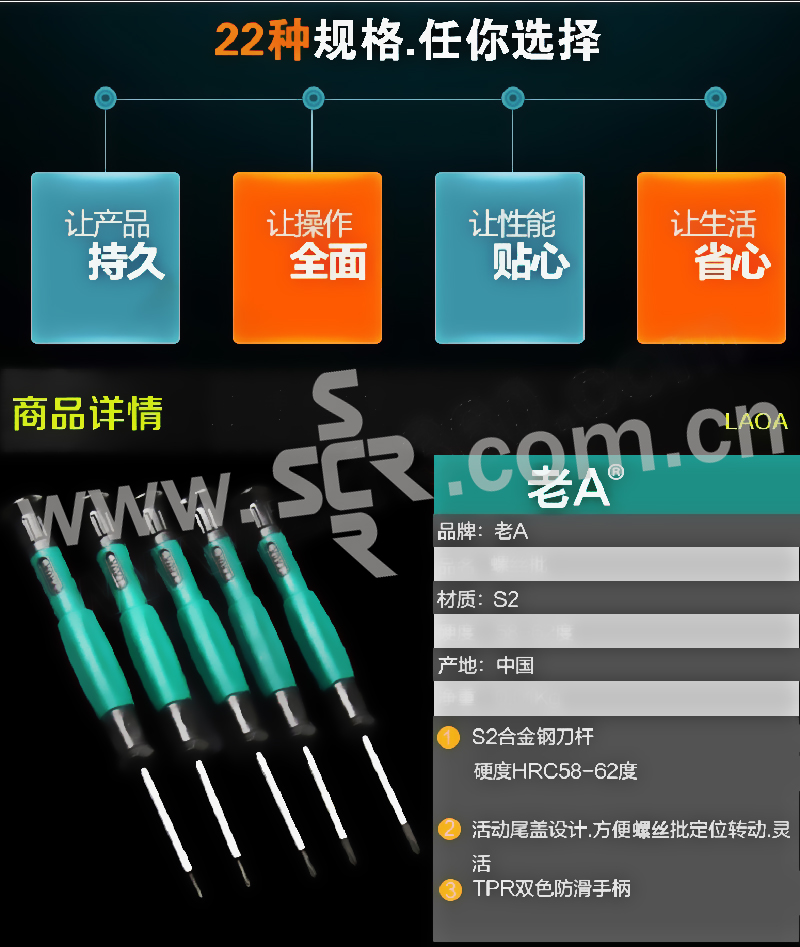 ·S2合金钢制造,硬度高,韧性好,手柄防滑设计