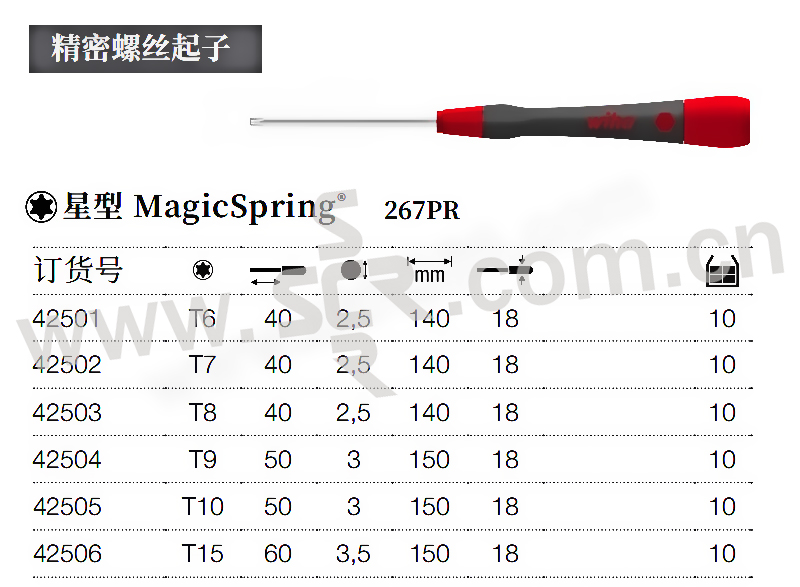 WIHA/威汉 267PR系列带卡簧精密星形螺丝起子 42501 T6×40mm 1把