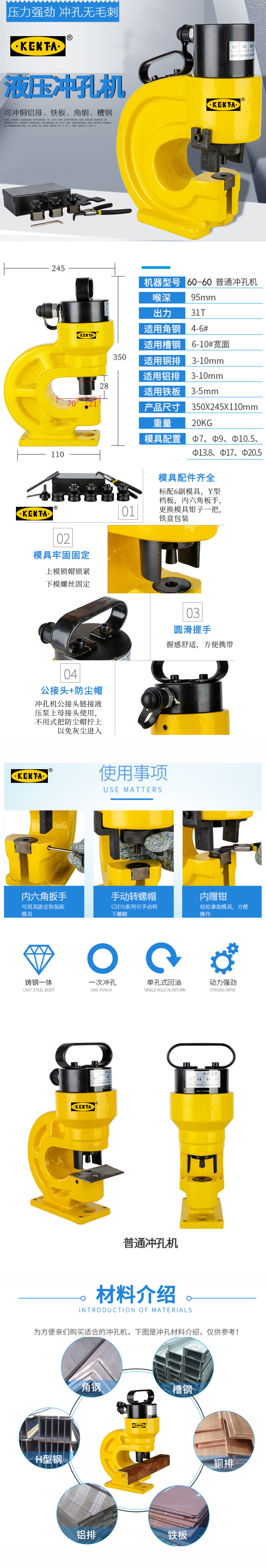 分体式液压冲孔机电动角钢槽钢打孔机铜铝排手动开孔器铁板穿孔器