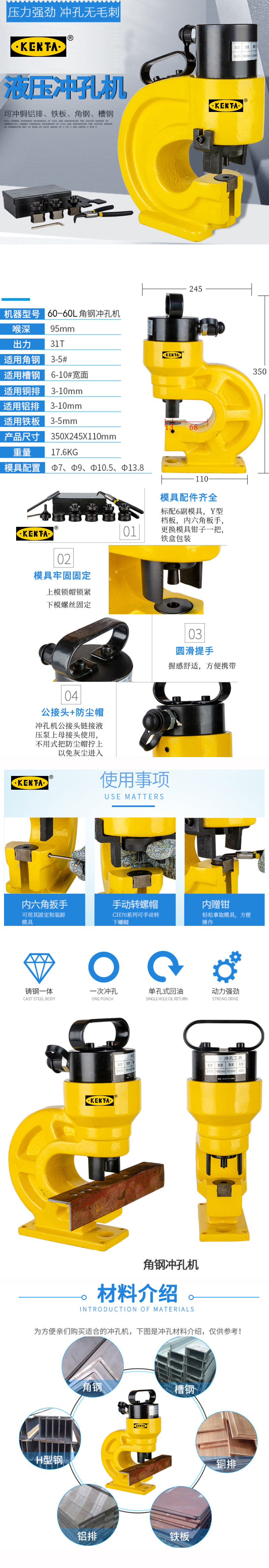 分体式液压冲孔机电动角钢槽钢打孔机铜铝排手动开孔器铁板穿孔器