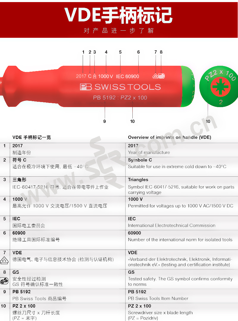 ·VED双组份手柄,带有亲肤、柔软的弹性包覆层和非常坚硬的聚丙烯芯可将手动产生的高扭矩轻松传递给螺栓,手柄经过VDE测试可在1000V一下完全绝缘,整体延伸的绝缘刀杆.
