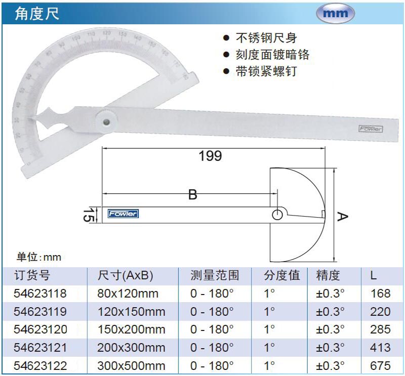 FOWLER 角度尺 54623118 80×120mm