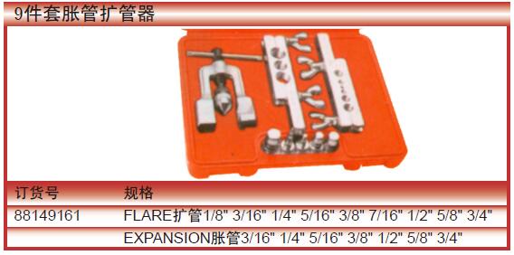 FLARE扩管1/8" 3/16" 1/4" 5/16" 3/8" 7/16" 1/2" 5/8" 3/4" EXPANSION胀管3/16" 1/4" 5/16" 3/8" 1/2" 5/8" 3/4"