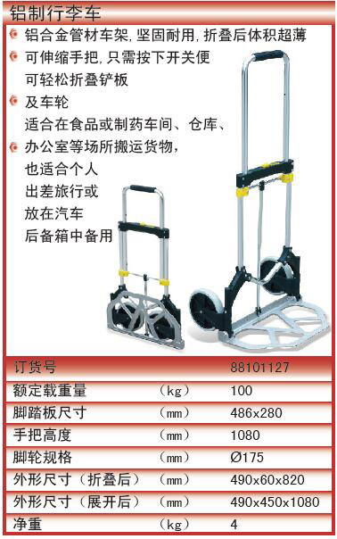 ·铝合金管材车架,坚固耐用,折叠后体积超薄可伸缩手把,只需按下开关便可轻松折叠铲板及车轮