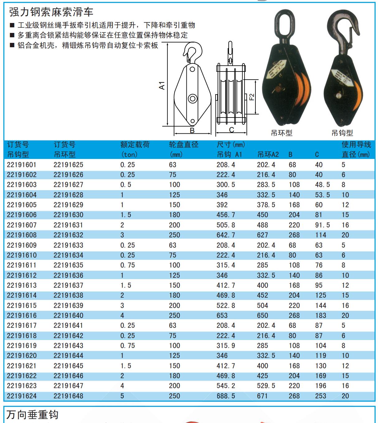 ·工业级钢丝绳手扳牵引机适用于提升,下降和牵引重物 ·多重离合锁紧结构能够保证在任意位置保持物体稳定 ·铝合金机壳,精锻炼吊钩带自动复位卡索板