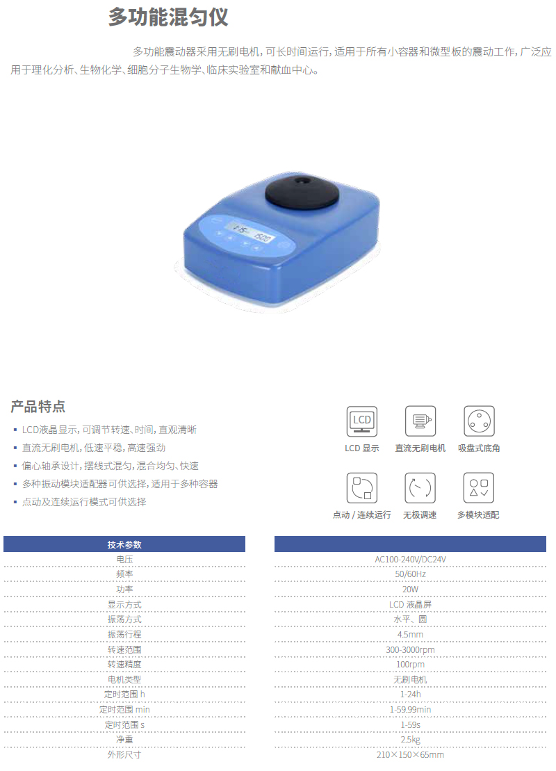 ·运行平稳,噪音小,振荡速度无级可调 ·采用万用夹具 ·可配多种试瓶,满足不同客户需要