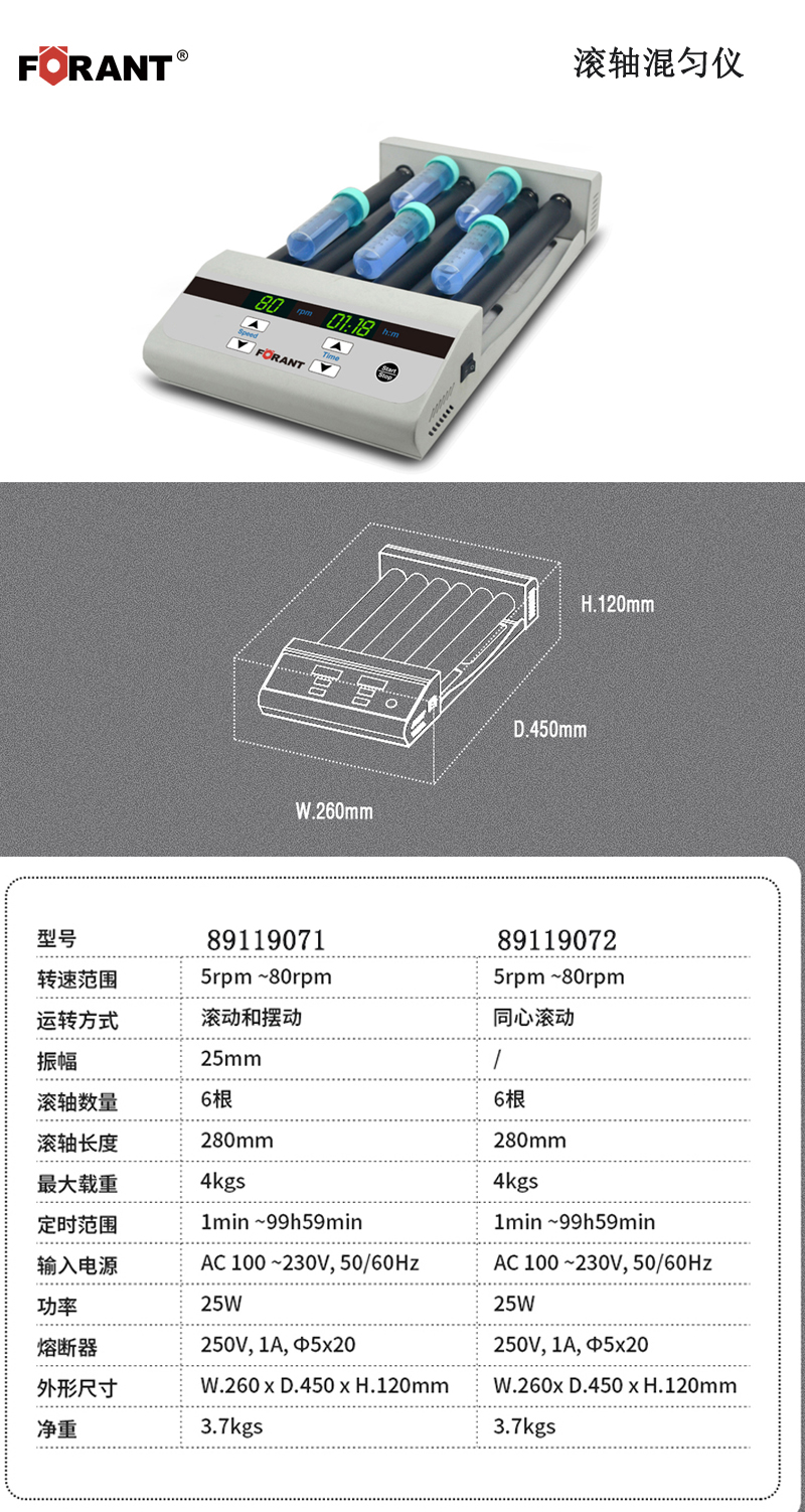 A40640 89119072 滚轴 10-80rpm —— 450×260×120mm 无摇摆 同心滚动 6 4kg 250V,1A, Φ5*20 1min ~ 99h59min AC100-230 50-60HZ 25W 250V,1A, Φ5*20 3.7kgs 1个 5899.00