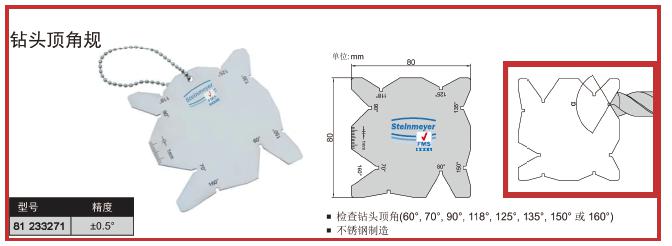 ·检查钻头项角(60°,70°,90°,118°,125°,135°,150°或160°) ·不锈钢制造