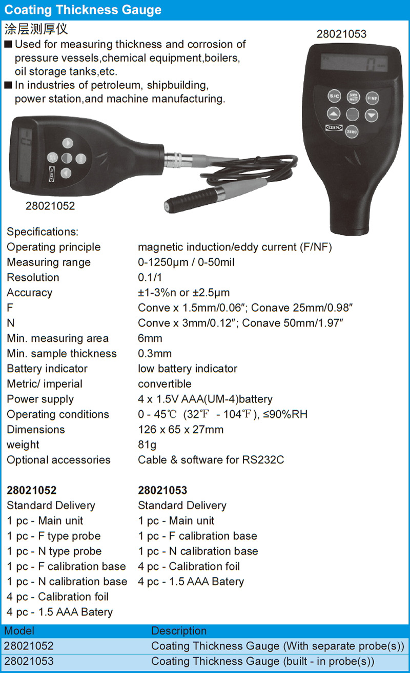 测量范围:0~1250μm/0~50mil