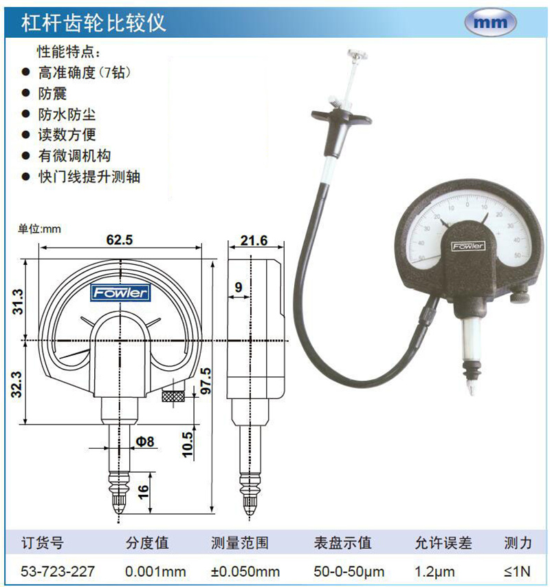 ·高准确度(7钻) ·防震 ·防水防尘 ·读数方便 ·有微调机构 ·快门线提升测轴