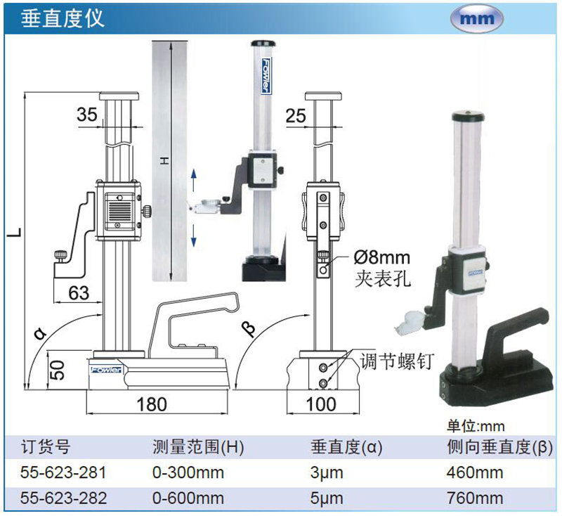 订货号 制造商型号 测量范围 垂直度 侧向垂直度 高度 价格 购物车