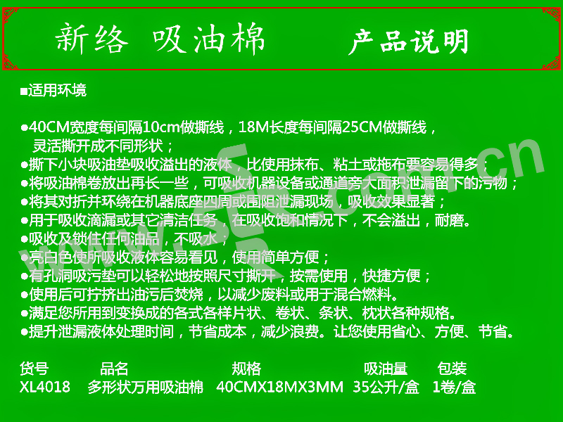 XINLUO/新络 吸油棉 XL4018 白色 1卷 1箱