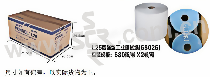 JEENOR/洁诺 PONGEL L20标准型工业擦拭纸 68026 白色 27.5*40cm 大卷式 1卷