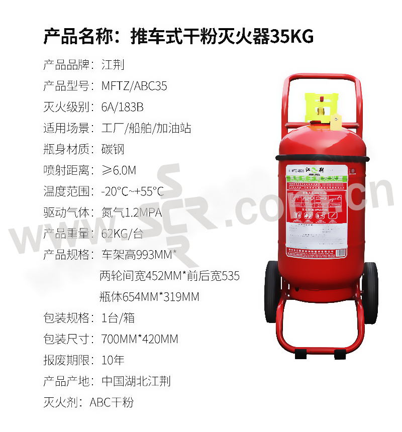 JIANGJING/江荆 推车式干粉灭火器 MFTZ/ABC35 灭火剂含量35kg 1个
