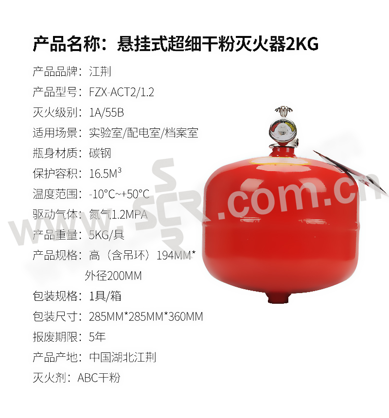 JIANGJING/江荆 悬挂超细干粉灭火器 FZX-ACT2/1.2 灭火剂含量2kg 1个