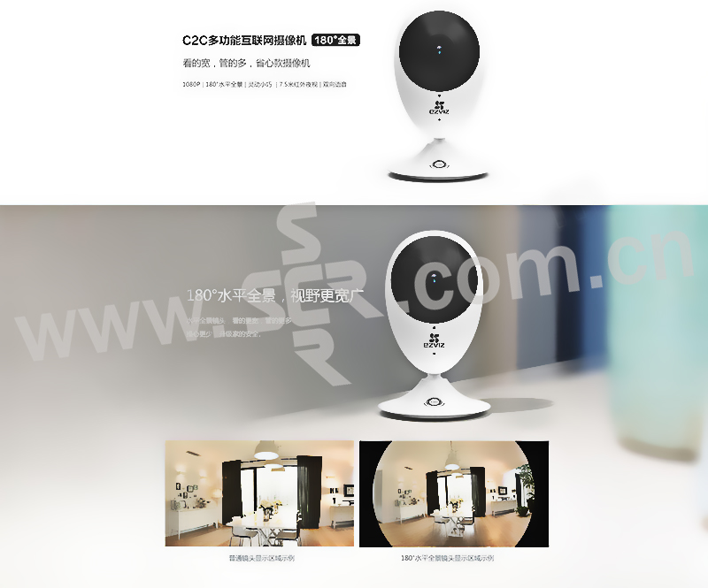 EZVIZ/萤石 C2系列多功能互联网摄像机(全景版) C2C-全景 镜头焦距1.4mm 200万像素 1台
