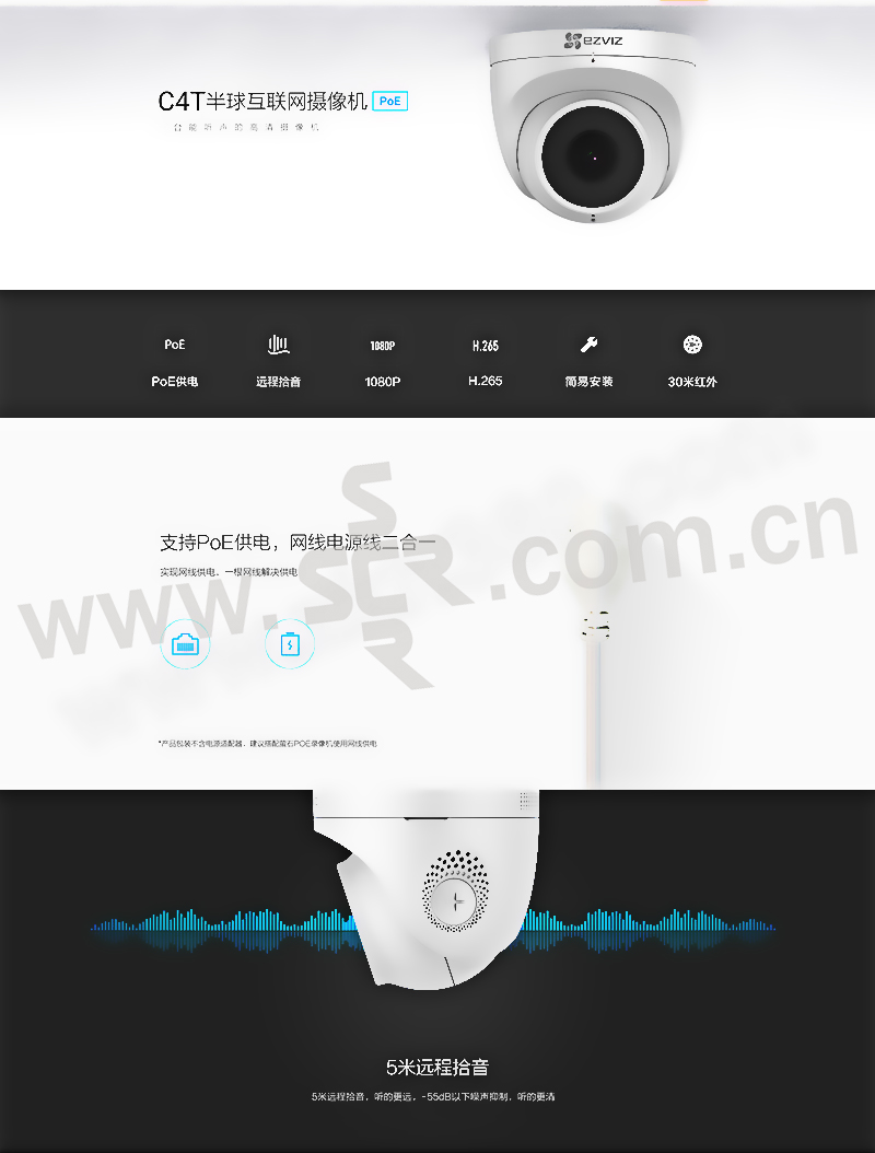 EZVIZ/萤石 C4系列互联网摄像机 C4T-PoE 镜头焦距2.8mm 200万像素 支持PoE供电 1台
