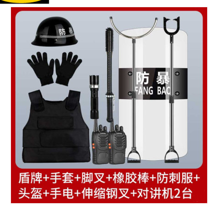防爆C套餐实用9件套(盾牌、手套、头盔、防刺服、橡胶棒、手电、伸缩钢叉、脚叉、对讲机×2)