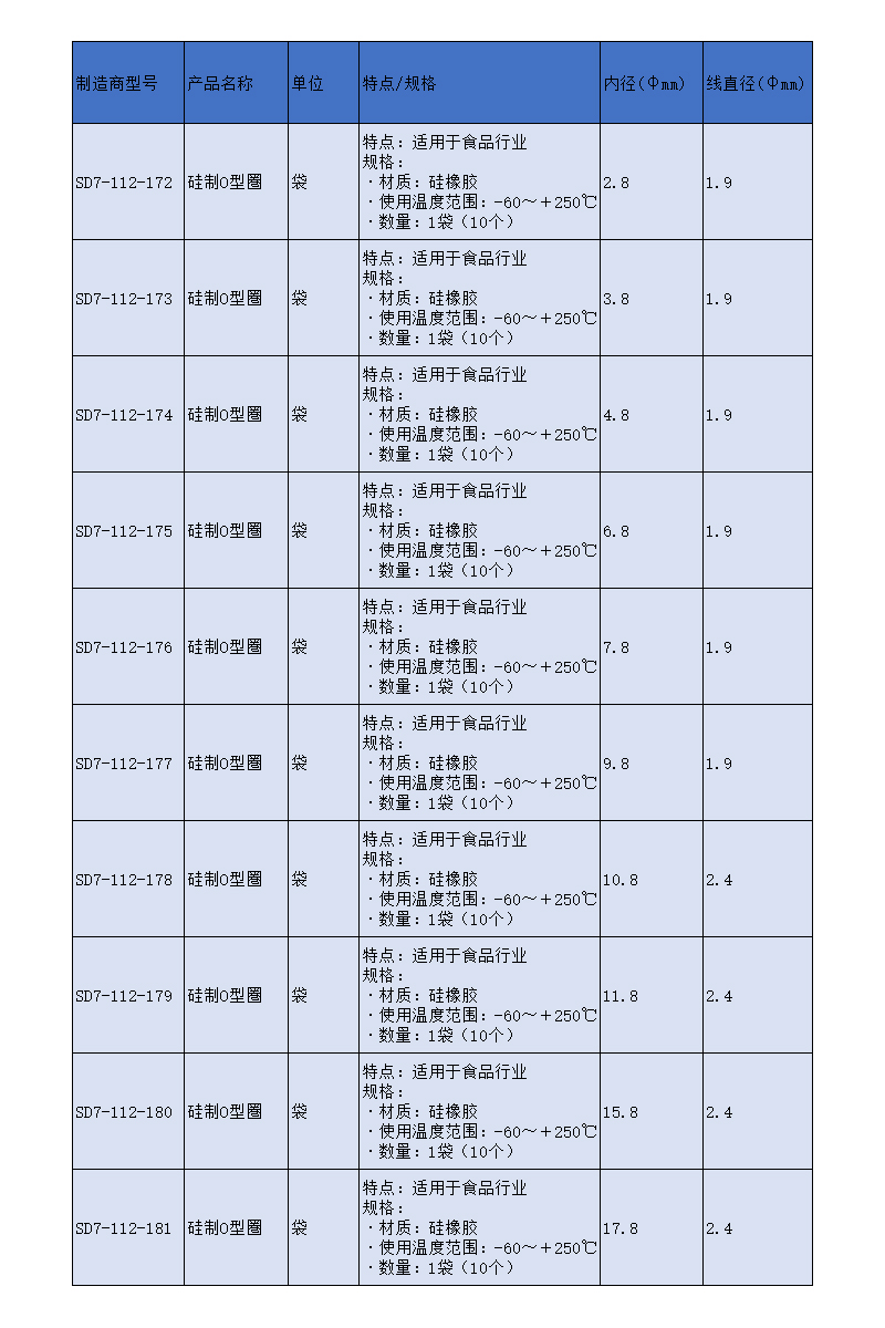 SLAMED 硅制O型圏 内径6.8mm 线直径1.9mm SD7-112-175