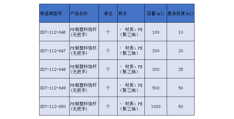 SLAMED PE制塑料烧杯(无把手) 200ml 基准刻度20ml SD7-112-647
