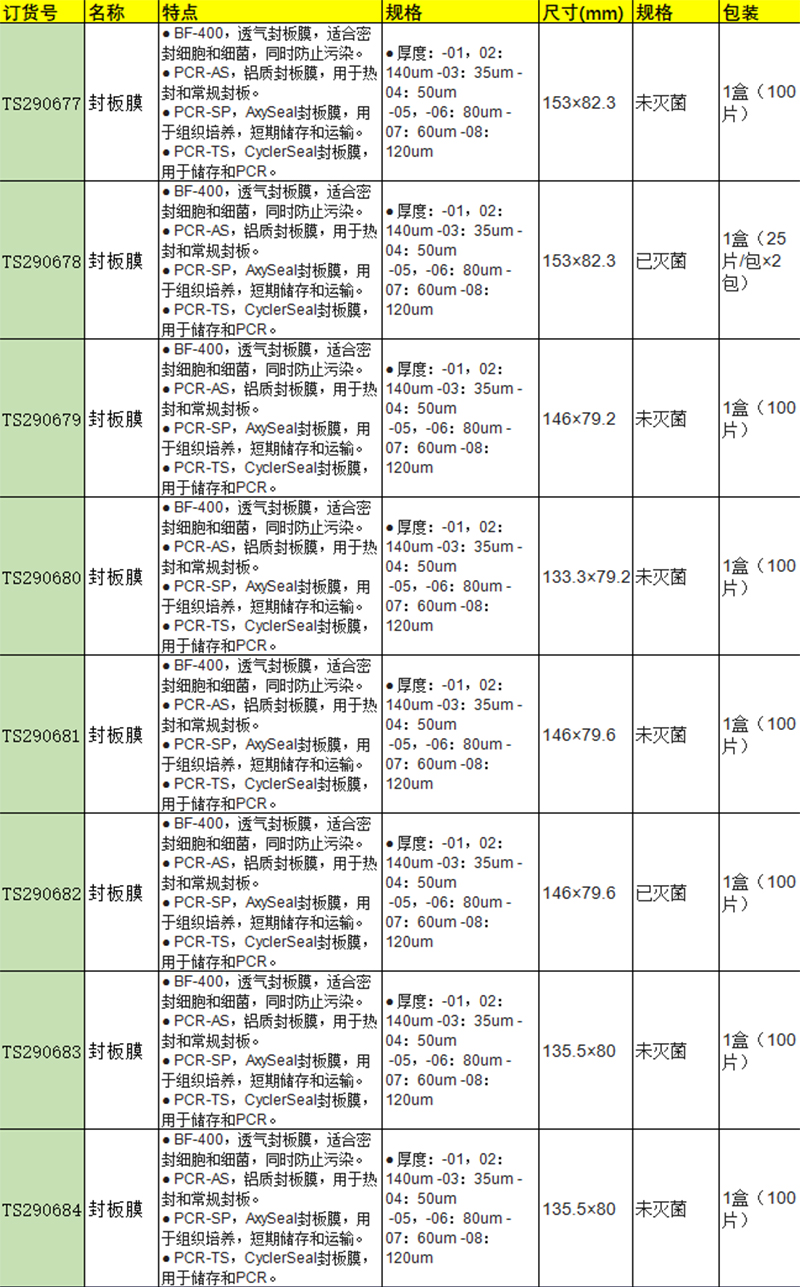 ·  BF-400,透气封板膜,适合密封细胞和细菌,同时防止污染。