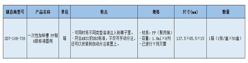 SLAMED 一次性加样槽 PP制8联移液器用 SD7-108-726