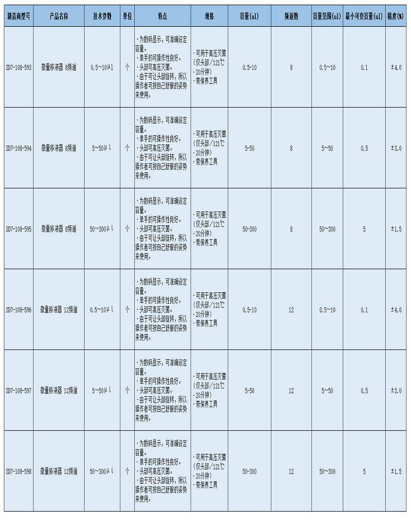 SlAMED 微量移液器 8频道 50~300μl SD7-108-595