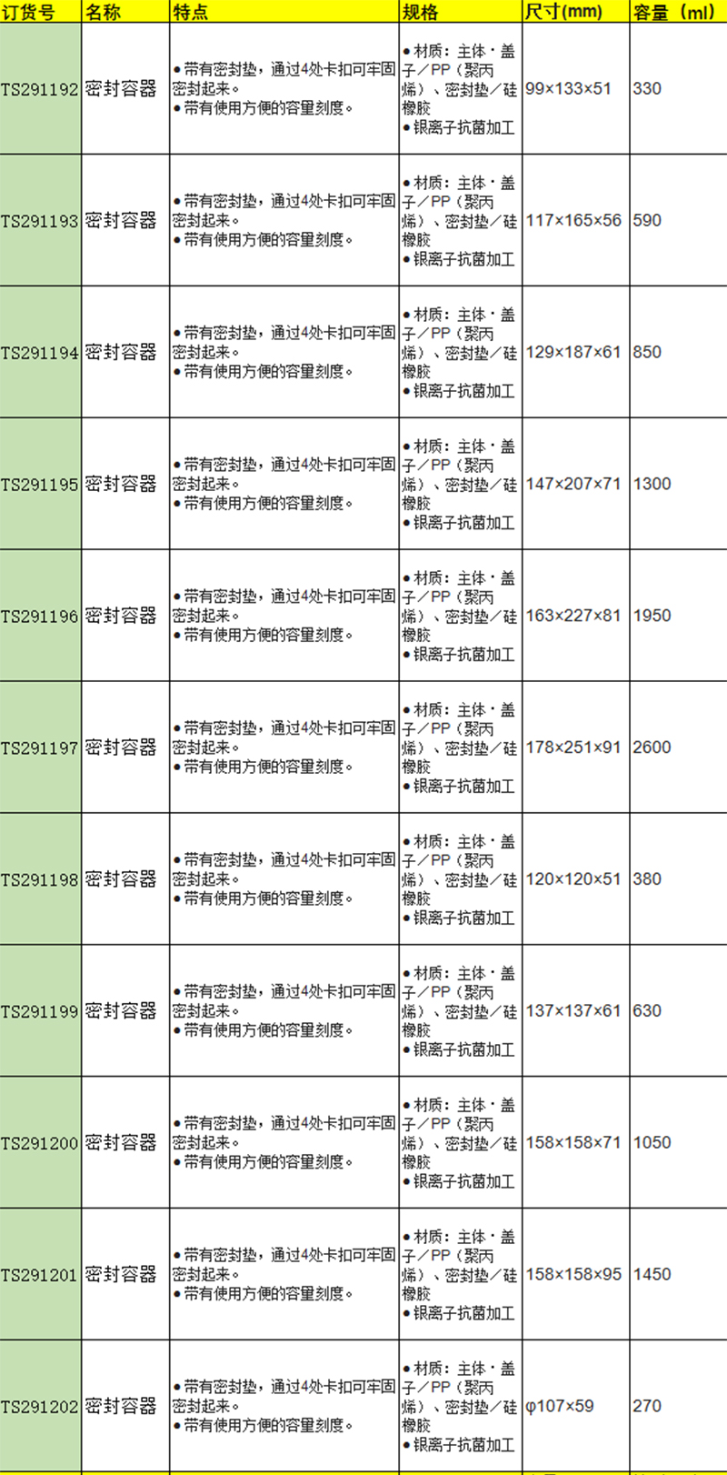 ·带有密封垫,通过4处卡扣可牢固密封起来。 ·带有使用方便的容量刻度。