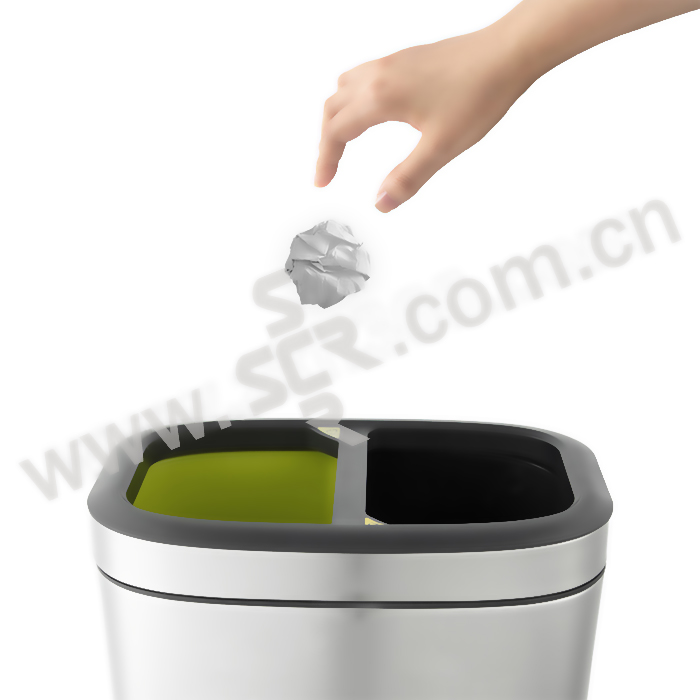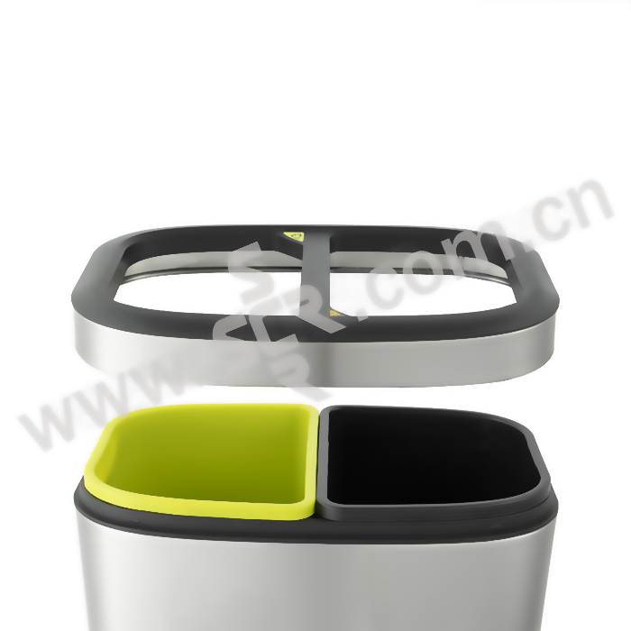UMAN/优曼 哑光不锈钢无盖分类垃圾桶 HM9036B 420×255×630mm 20L+20L 不锈钢亚光 1个