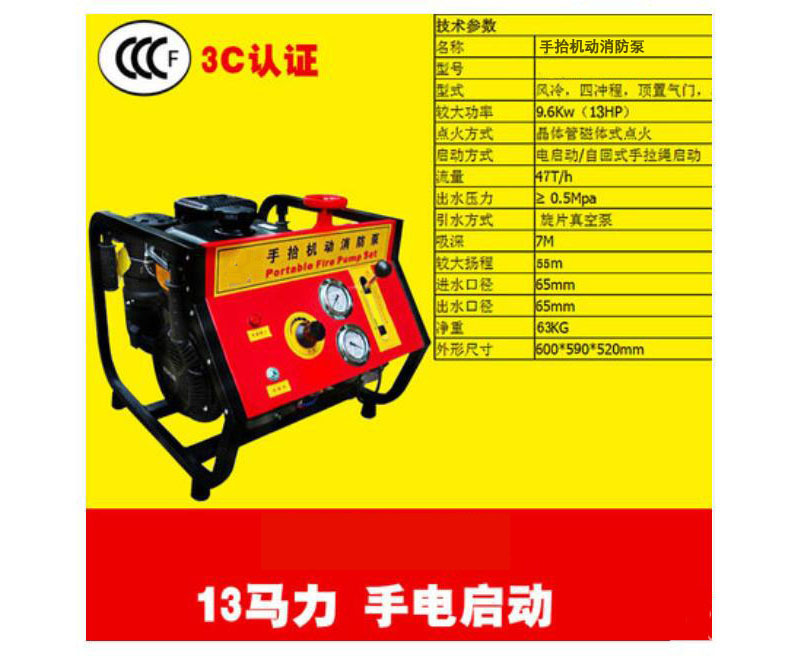 手台机动消防泵JBQ5.5/9(手电启动)13马力