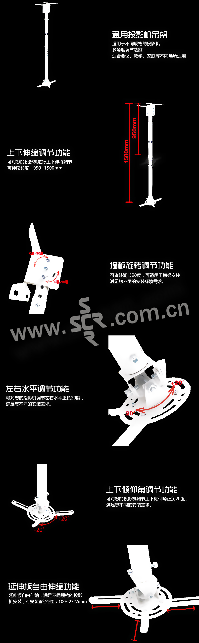 NB 投影仪吊架 T718-4 长度950~1500mm 白色 1个