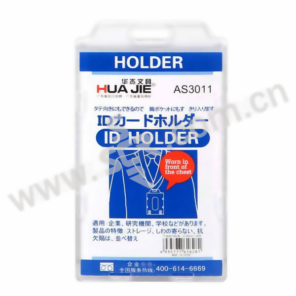 HJ/华杰 硬质透明配绳证件卡 AS3011G 60×100mm 透明 100个 1包