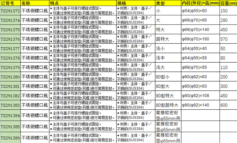 主体・盖子/不锈钢(SUS304)