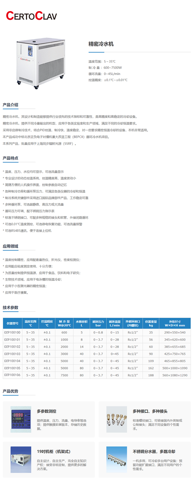 ·各种制冷功率和循环泵压力,可满足各类仪器的冷却和恒温;