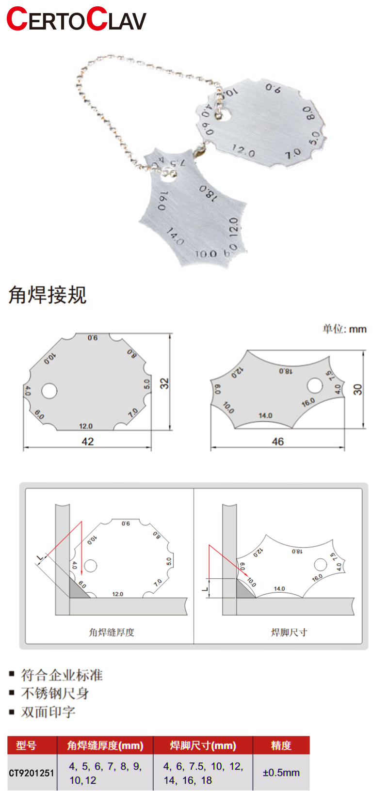 焊脚尺寸:4mm,6mm,7.5mm,10mm,12mm,14mm,16mm,18mm