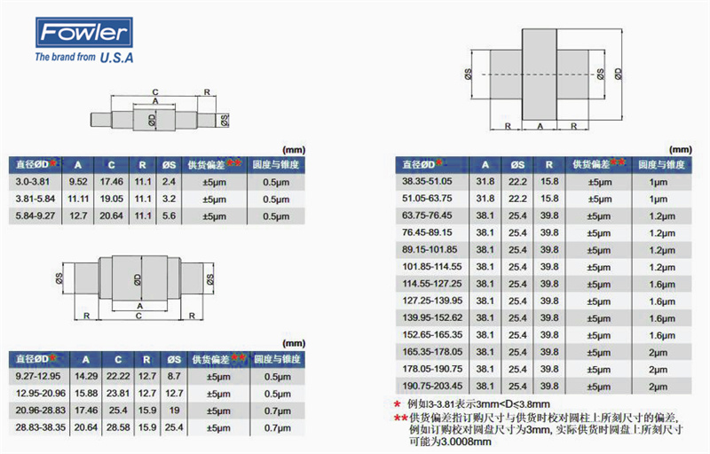·由含钨工具钢制成,油淬火,超低温处理 ·产品的耐磨性好,寿命长,尺寸稳定,光洁度高 ·硬度HRC60-62 ·标准ASMEB89.1.5