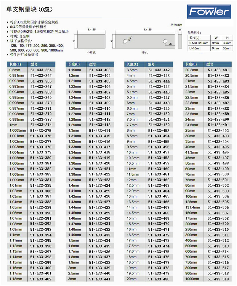·量块是长度计量的基准 ·适用于调整、校正或检验测量器具、仪器和精密机床等,与量块附件组合使用可作为精密划线等工作 ·钢制材质为高碳铬钢,耐腐蚀,尺寸稳定性好 ·符合ISO3650,DIN861,带生产厂检验证书